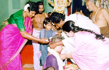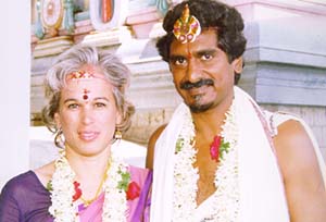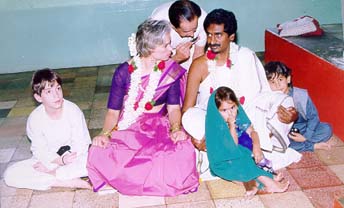 After Naidoo completed the official part of his Indian visit at the end of last week, he requested his friend L C Jain, who just completed his term as Indian high commissioner to South Africa some weeks ago, to organise a traditional Andhra Naidu wedding for him in Bangalore, which is now Jain's home base. Jain's wife Devaki, an internationally known economist and frontrunner of the women's movement, hosted the wedding. Her brother, conservationist and writer M A Parthasarathy, his daughter-in-law Sujatha and her parents helped to put the show together. Lucie was dressed for the occasion by a local Bharata Natyam dancer. "We ran into some problems as this is Dhanur maasa and not the auspicious month for weddings," said Sujatha. "We managed to get around that hurdle by picking a temple that my mother frequents and clubbing this ceremony with a Kalyanotsava (marriage ceremony) for the gods themselves." Naidoo relished every minute of the two-hour ceremony, chatting with Rediff between various rituals. "I am not an Indian, I am a South African," he declared firmly, hitching his dhoti up around his thighs as he sat cross-legged on the low platform. "During the apartheid regime, the government adopted a policy of divide and rule, and tried to say that the ongoing struggle was South African, and not Indian. Many of us Indians then adopted the militant stance that we were South African and not Indian. Now that we are free, we are happy to enjoy our cultural diversity." Sujatha stepped forward to help Naidoo tie the mangalsutra around Lucie's neck and put silver toe rings on her feet. In accordance with Naidu custom, Lucie placed similar toe rings on his feet as well. As the priest coated coconuts with turmeric for the next rite, Naidoo resumed his conversation. "To understand what you are, you must see where you come from," he said almost philosophically. "My ancestry is Indian and I am proud of my Indian roots. I want to understand some traits deeply ingrained in me that might have come from my ancestry. This knowledge will definitely enrich me. "It is important to know where you come from," he continued. "After all, you are shaped by your history. The world is increasingly focused on materialism and driven by global consumerism. The social fabric is being torn apart by fundamentalism, dishonesty and violence. Success is becoming an act of domination, and only those who have glamorous houses, money in the bank and luxury cars are considered successful. Actually, all this is so transient as even monuments deteriorate over time. Knowledge is the only intangible asset that is invaluable like the Kohinoor diamond. India can really teach the rest of the world about deep roots and how they can give you the right values and beliefs."