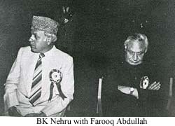 B K Nehru with Farooq Abdullah Mufti Sayeed was the president of the Congress party of Jammu and Kashmir. His loyalty to the country was unquestionable; so was his lack of any communal feeling. The Mufti did not, however, seem to me to have the breadth of depth of vision necessary to determine the policies of the Government of India towards Kashmir. This required, among other things, the placing of the national interest way above that of the party interest. This, in common with other politicians, Mufti Sayeed was not capable of doing.